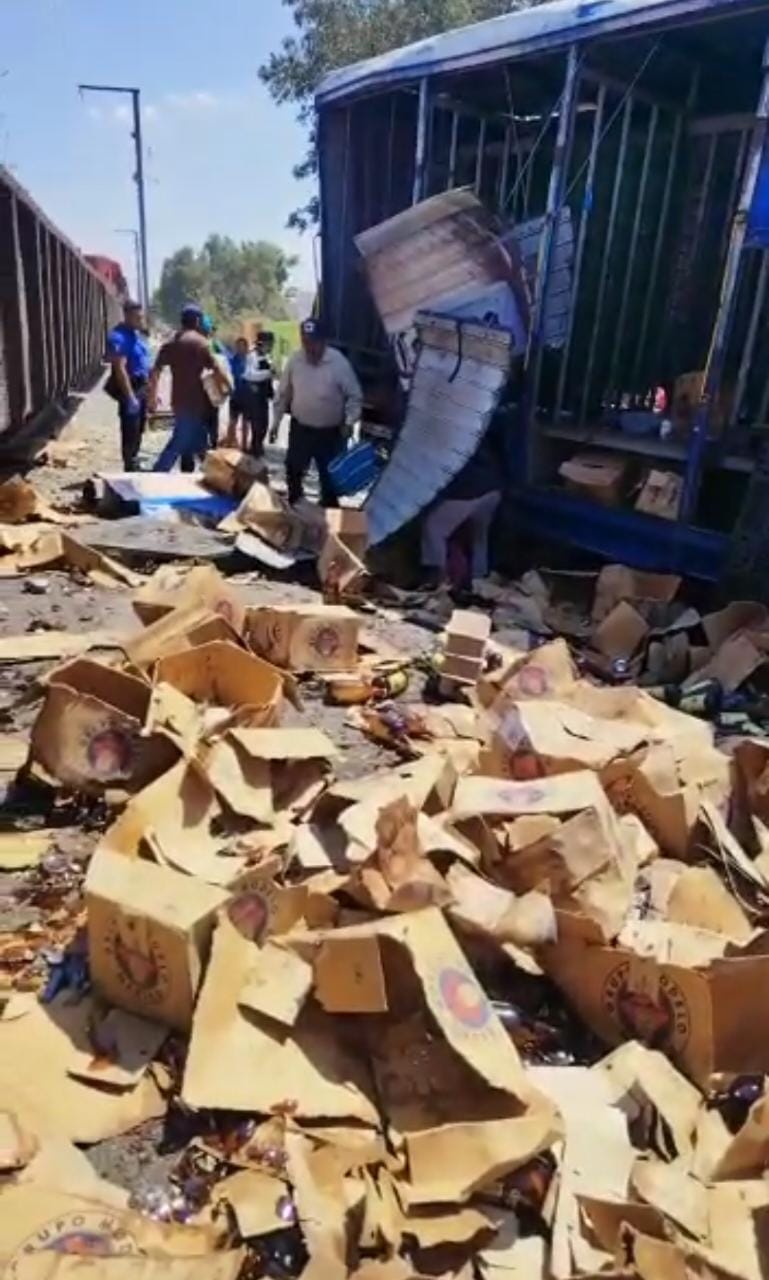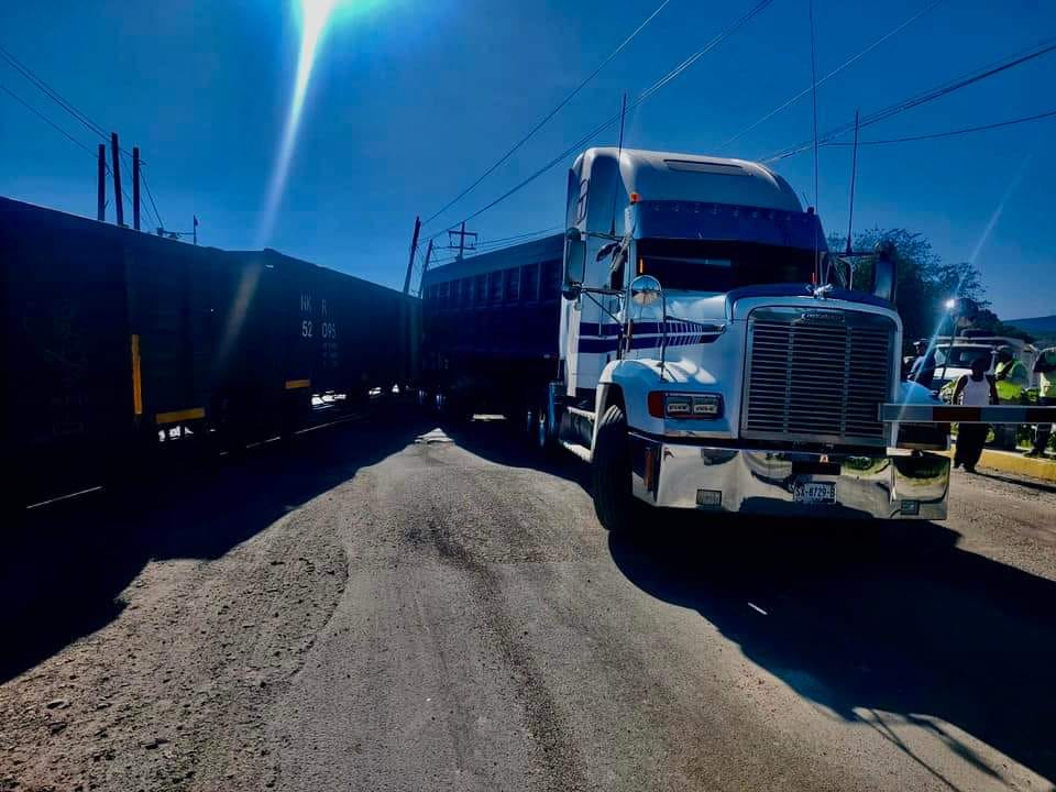 Camión de carga fue arrastrado varios metros al intentar ganarle el paso al tren, ocurrió en Viborillas