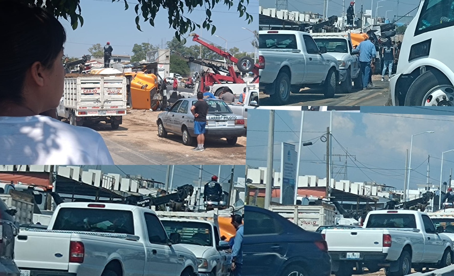 Se queda tráiler atorado en el acceso IV de la zona Industrial Benito Juárez