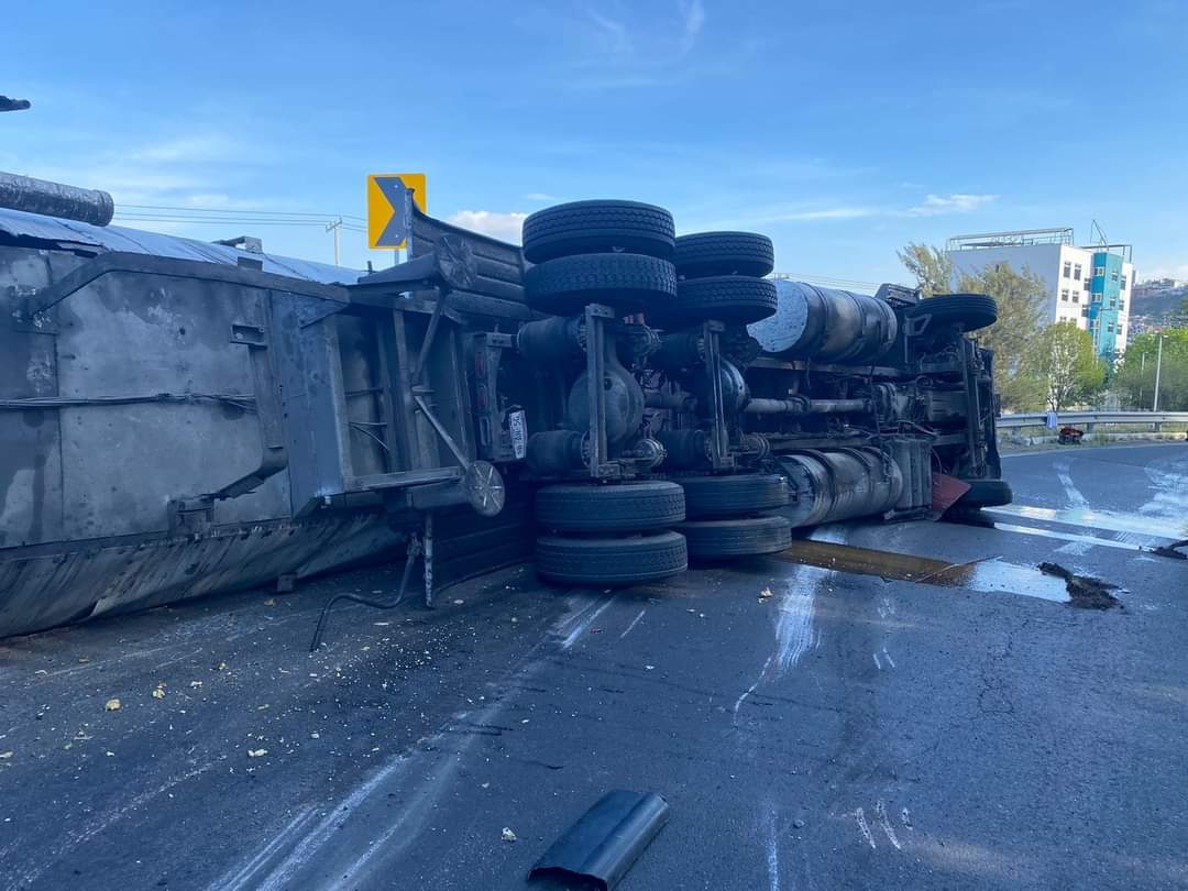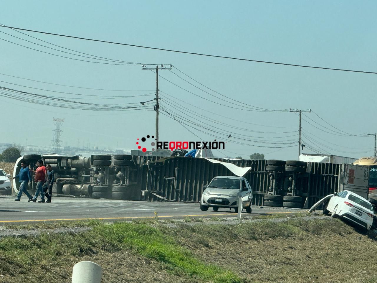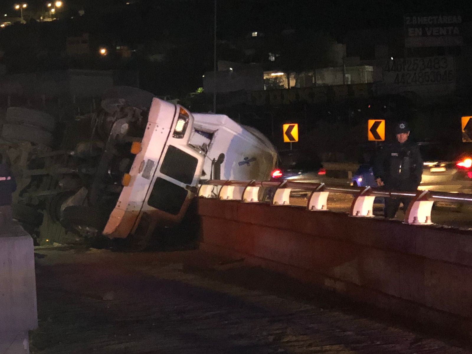 Trailer vuelca y obstruye la México Querétaro en dirección a la CDMX