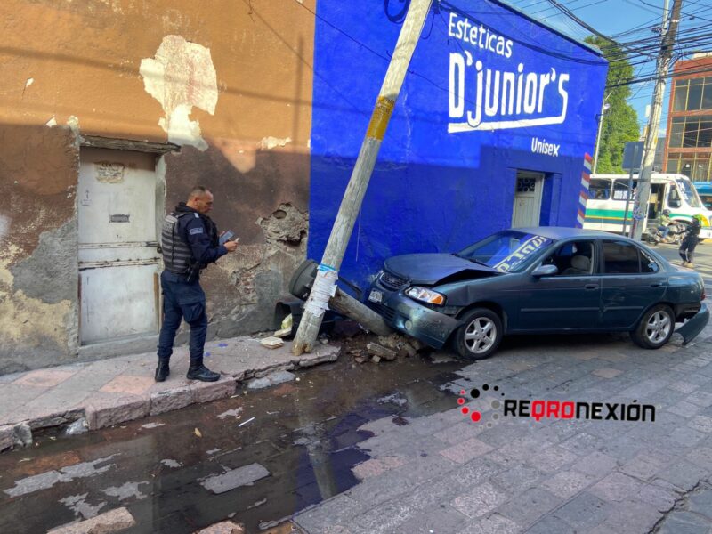 Una aparentemente falla mecánica provocó que el conductor de un vehículo Vento terminará por chocar contra un poste ubicado entre Constituyentes del Parque y Corregidora Norte. Por fortuna los daños únicamente fueron materiales, el conductor al parecer salió sin lesiones de consideración. Del hecho tomo conocimiento policia municipal de Querétaro. El accidente provocó que varias calles a la redonda se quedarán sin el servicio de energía eléctrica.
