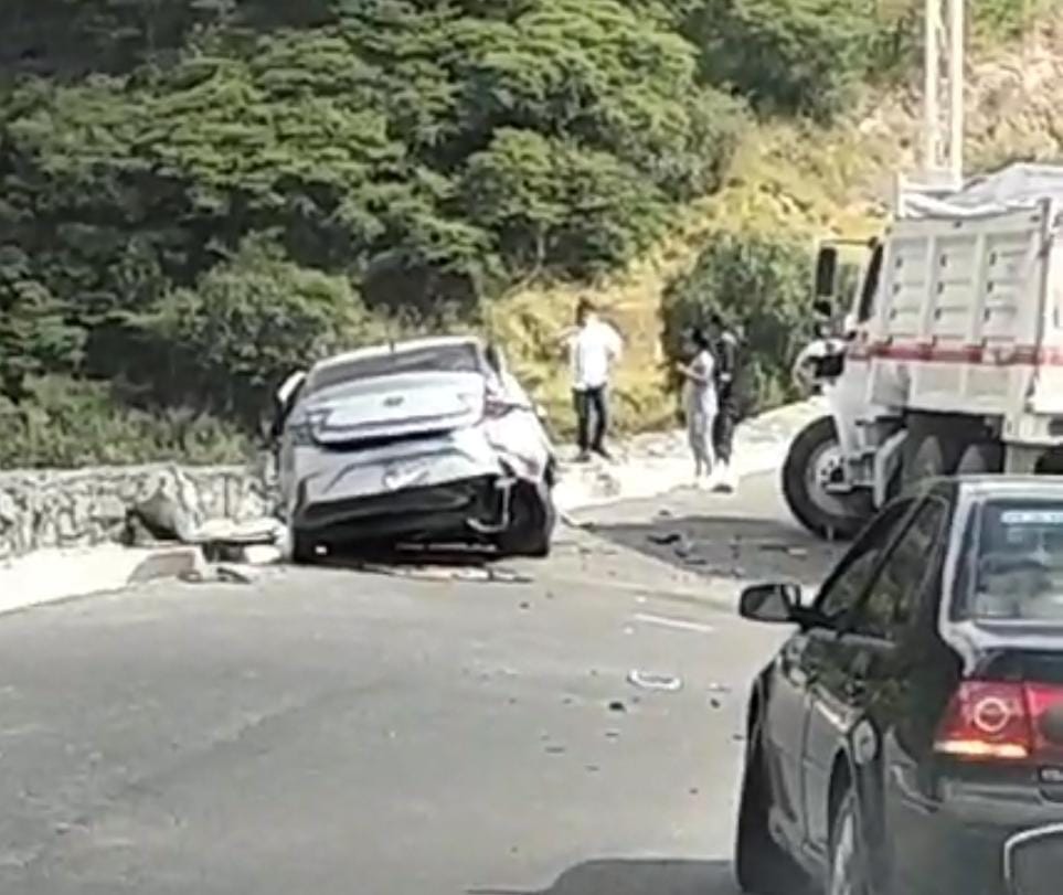 Fuerte movilización de los cuerpos de emergencia se registró en la carretera a Pinal de Amoles, a la altura de zona conocida como Puerta del Cielo en dónde se reportó el choque frontal entre una camioneta y un camión de valores.