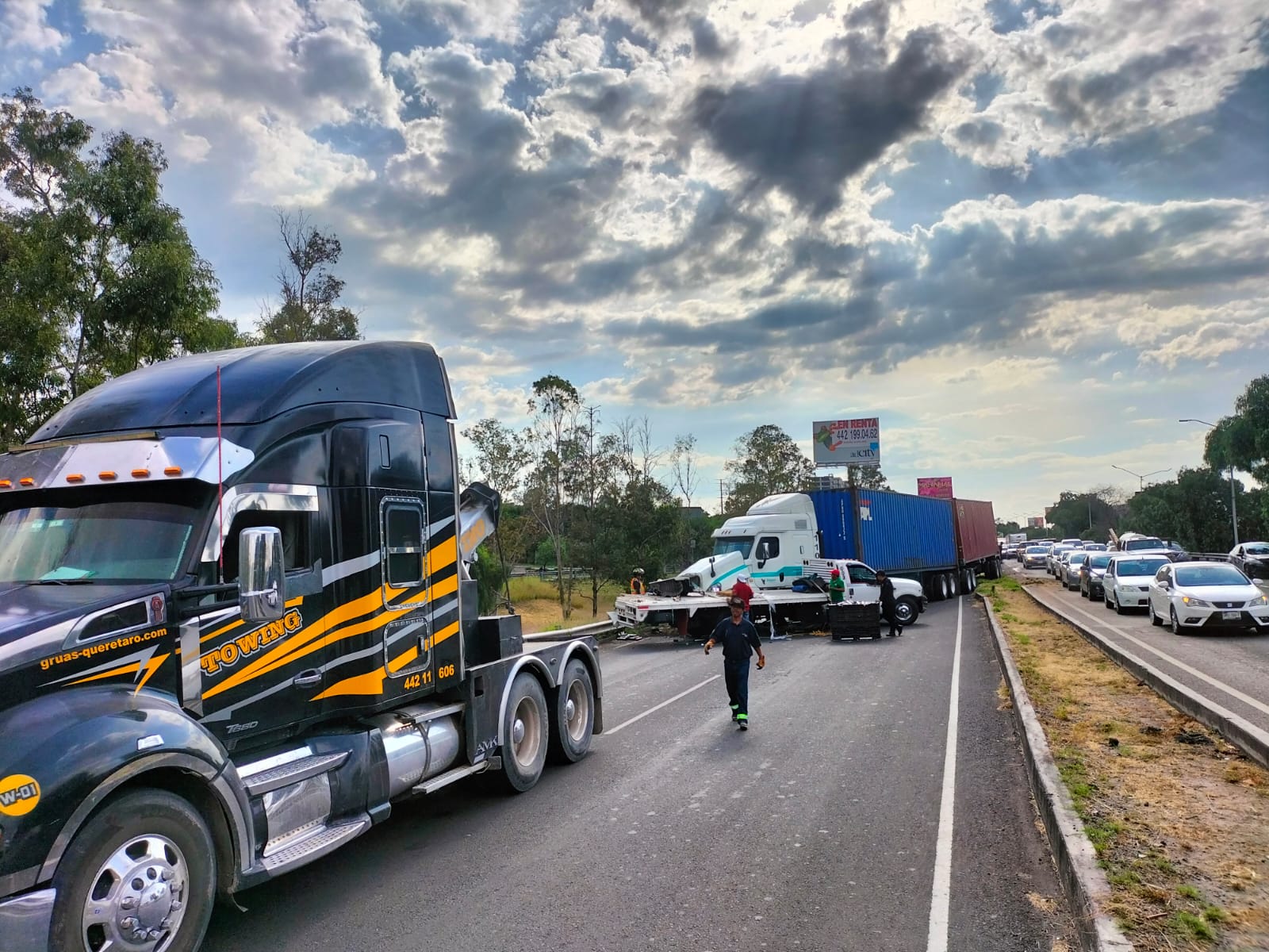 Carretera Mexico Querétaro cerrada por volcadura de trailer