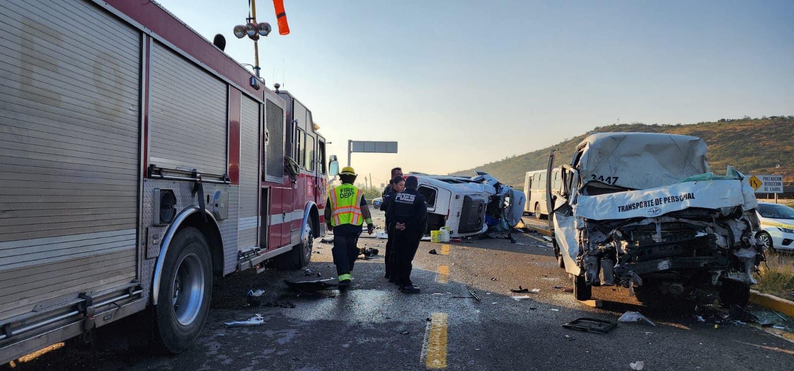 Choca camión de transporte de personal en el libramiento, Norponiente