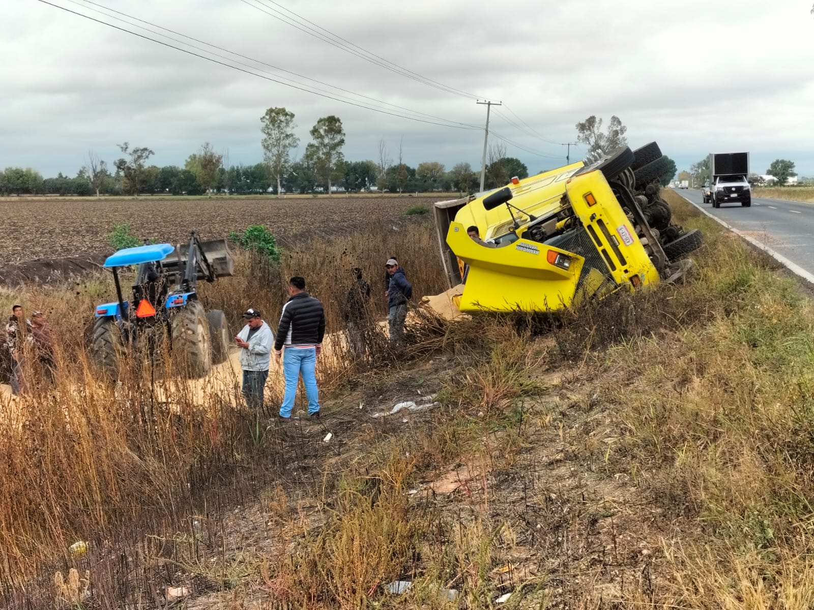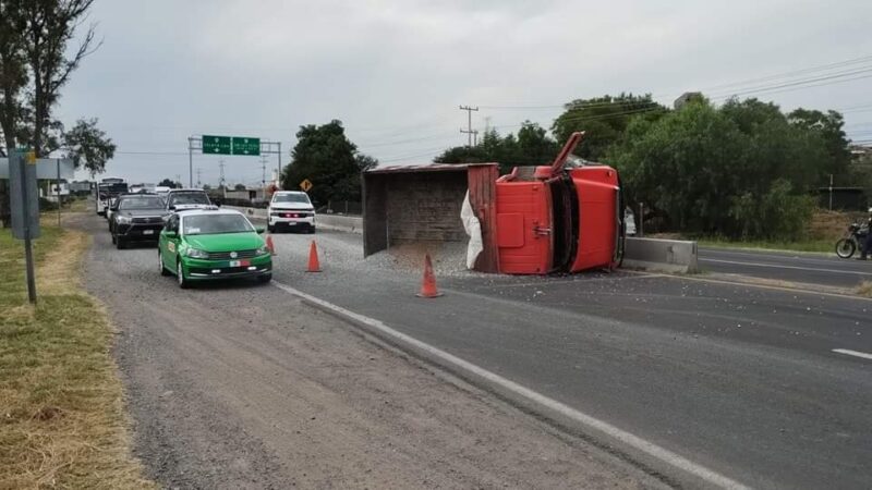 Vuelca camión cargado de alimento para animales en la carretera a Tequisquiapan