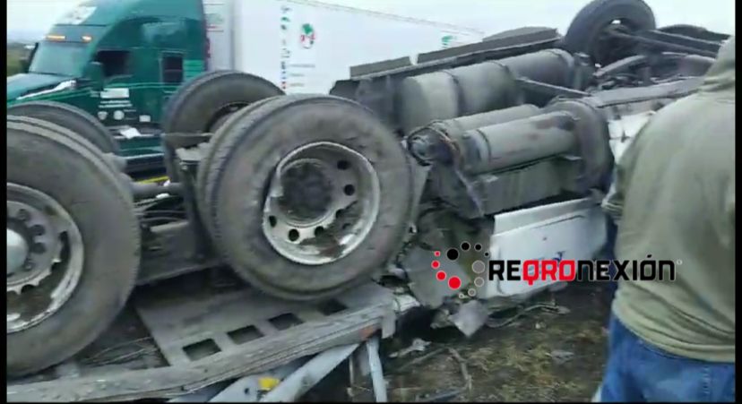La mañana de este jueves se registró un accidente automovilístico sobre la carretera Federal Mexico-Querétaro a la altura del municipio de Pedro Escobedo, donde un tracto camión salió de la carretera y volcó sobre la división, perdiendo su caja en la zona. Por ello Elementos de la Guardia Nacional y Policías Municipales abanderaron la zlna y servicio de grúas cerraron la dirección a Querétaro para maniobrar y retirar el tráiler siniestrado. No se reportan lesionados.
