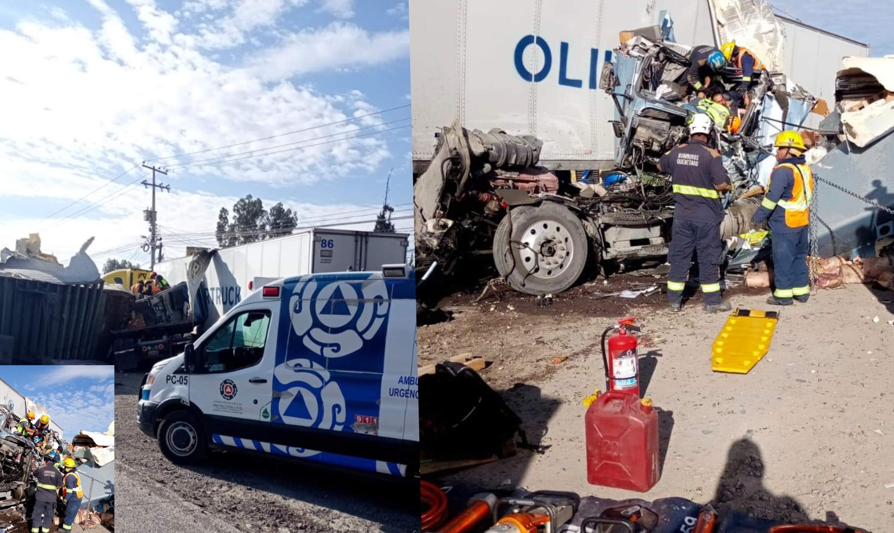 Bomberos de Querétaro arribaron al libramiento Noreste luego de un fuerte accidente en el que una persona quedó prensada al interior de un vehículo, luego de ser impactado por un tráiler antes de la caseta de cobro de Chichimequillas. Luego de las maniobras de rescate, el conductor fue trasladado al hospital a través de un helicóptero debido a las lesiones de gravedad que sufrió en el aparatoso accidente. Posteriormente a través de una grúa fueron retirados los vehículos para liberar la vialidad.