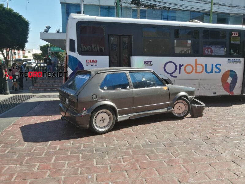 Un taxi de Atlacomulco, del Estado de México, intentó dar una vuelta prohibida invadiendo el carril exclusivo del transporte público, lo que provocó que fuera impactado por una unidad de Qrobús. Los hechos se registraron en Constituyentes y Ezequiel Montes, en la capital queretana, automovililistas que pasaban por el lugar pidieron apoyo al número de emergencia 9-1-1. Fue necesaria la presencia de cuerpos de rescate ya que el conductor quedó prensado, se reporta delicado de salud, su acompañante salió con algunos golpes. También fueron valorados algunos pasajeros de la unidad…
