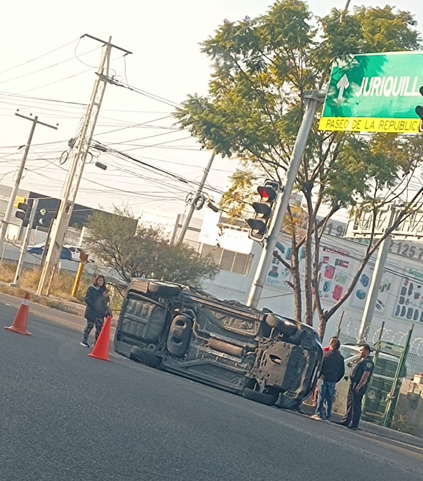 Vuelca vehículo en el Junípero Serra y Bernardo Quintana