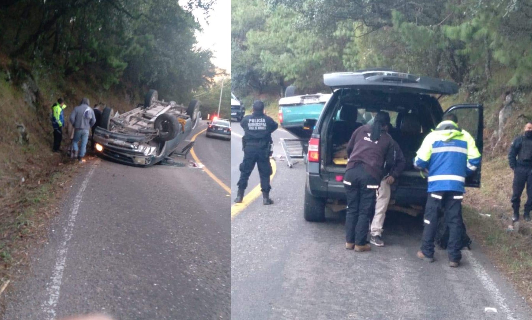 Vuelca camioneta en Pinal de Amoles, dos personas resultaron lesionados