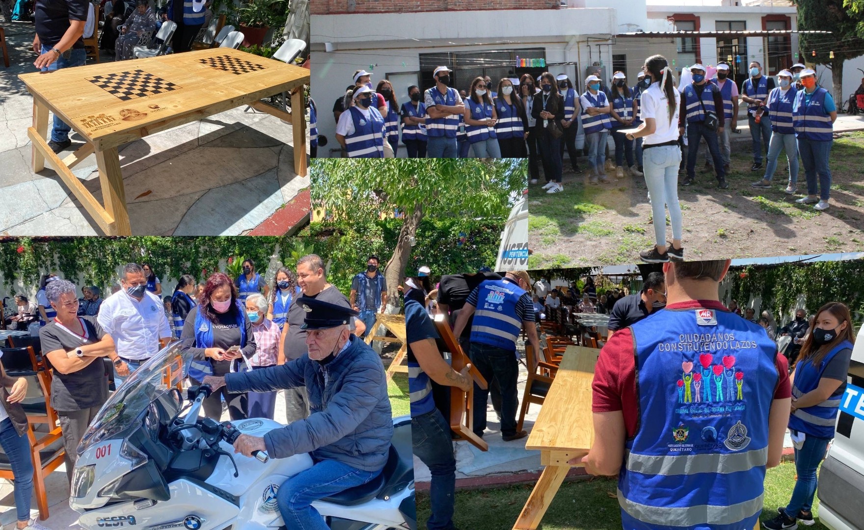 31 personas privadas de la libertad realizaron reparaciones a sillas y mesas La rehabilitación beneficiará a 40 adultos mayores En el marco del Día del Abuelo y, con el objetivo de coadyuvar en la reconstrucción del tejido social ante las personas externadas, la población privada de la libertad y su comunidad, la Comisión Estatal del Sistema Penitenciario de Querétaro (CESPQ), a través del programa Ciudadanos Construyendo Lazos del modelo Cosmos Penitenciario llevó a cabo una jornada para la rehabilitación del asilo de “San Sebastián”. En esta jornada participaron 10 voluntarios,…