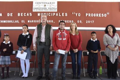 El Presidente Municipal de El Marqués, Mario Calzada Mercado, en compañía de su esposa, Lorena Regalado de Calzada, entregaron becas municipales “Yo Progreso” en las delegaciones de Chichimequillas y La Griega, destacando que por primera vez en el municipio se otorgaran 2 mil becas para darle cobertura total a la demarcación. Mario Calzada Mercado destacó el apoyo que se ha destinado para la educación, ya que es uno de los pilares más importantes de su administración: “hemos hecho un esfuerzo grande por hacer infraestructura educativa a lo largo de varias…