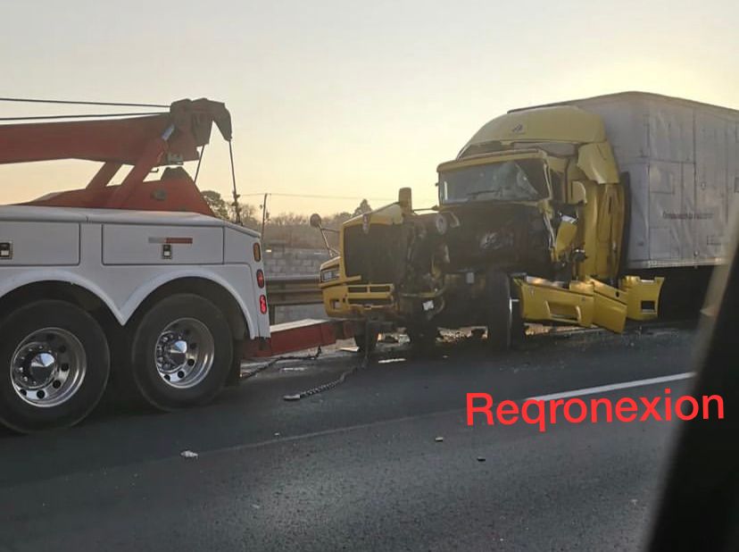 La mañana de este lunes dos unidades de carga pesada chocaron en la carretera Mexico Querétaro a la altura del kilómetro 138 en dirección a la capital queretana. El tráiler que ocasionó el impactó destrozó el motor de su unidad y el conductor fue atendido por paramédicos, la segunda unidad recibió el impacto en la caja de carga, la cual fue destrozada. La vialidad se vio afectada en carriles laterales, dejando el central con fluido lento. Al lugar arribaron elementos de la Guardia Nacional.