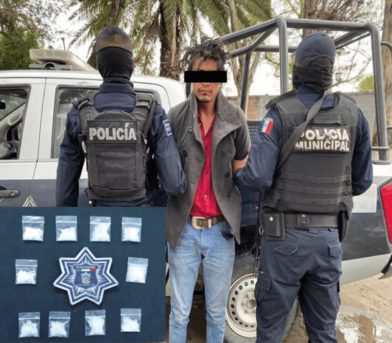 Oficiales de Pedro Escobedo detuvieron a un masculino por delitos contra la salud, derivado de una llamada al 9-1-1 en donde reportaban un sujeto sospechoso, los elementos llegaron a la comunidad de San Clemente, donde localizaron a un sujeto quien comenzó a lanzar objetos a la Unidad, por lo que dieron alcance y al momento de realizarle una inspección se mostró agresivo, llevando consigo 8 bolsas de plástico que en su interior contenían sustancia similar a la metanfetamina. Inmediatamente se realizó la detención y puesta a disposición ante la FGE…