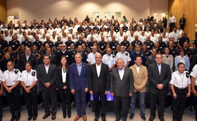 El presidente municipal de Querétaro Marcos Aguilar Vega encabezó la presentación del Programa Educativo de Técnico Superior Universitario en Policía Preventivo Municipal con el objetivo de que los alumnos puedan egresar con un título y cédula profesional expedidos por el Instituto del Servicio Profesional de Carrera Policial. La Secretaría de Seguridad Pública Municipal firmó un convenio de colaboración entre la Secretaría de Educación del Estado de Querétaro y el Municipio de Querétaro para dotar de títulos profesionales a los policías. Durante su mensaje, el presidente municipal de Querétaro, Marcos Aguilar…