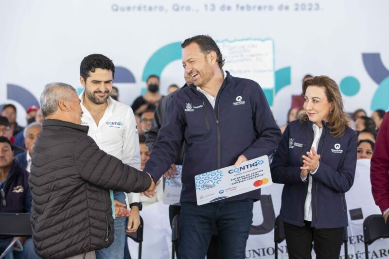 Este es un año de consolidación para Querétaro, afirmó el gobernador, Mauricio Kuri González, al presidir la entrega de apoyos económicos del programa Contigo Crecemos que beneficia a 693 personas que pertenecen al sector de tianguistas, taxistas y locatarios de mercados, con un monto único de cinco mil pesos cada uno, acción que fomenta su reactivación, crecimiento e integración social y económica. “Esta parte que es un pequeño apoyo que les estamos dando que sirva, ya sea para comprar inventario, ya sea para poder mejorar un poquito su lugar de…