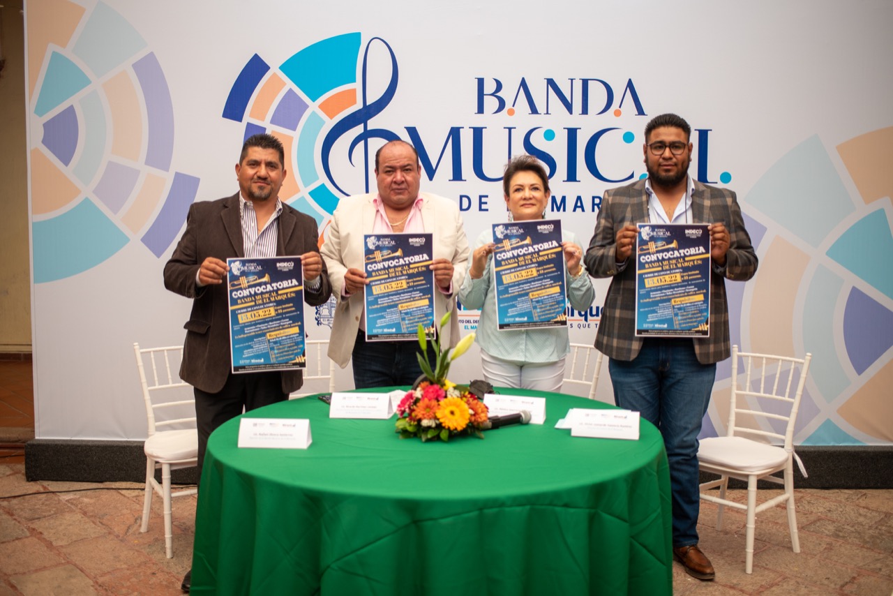 La banda estará conformada por 25 integrantes marquesinos. Con apoyo del gobierno municipal de El Marqués, a través del Instituto del Deporte y Cultura se presentó en rueda de prensa la convocatoria para la integración de la Banda Musical de El Marqués, la cual será conformada por 25 integrantes de la entidad. Mujeres y hombres mayores de edad con habilidades y experiencia para tocar instrumentos de aliento y percusión, con deseos de superación y de formar parte de las estructuras de este proyecto, podrán participar en el proceso de selección…