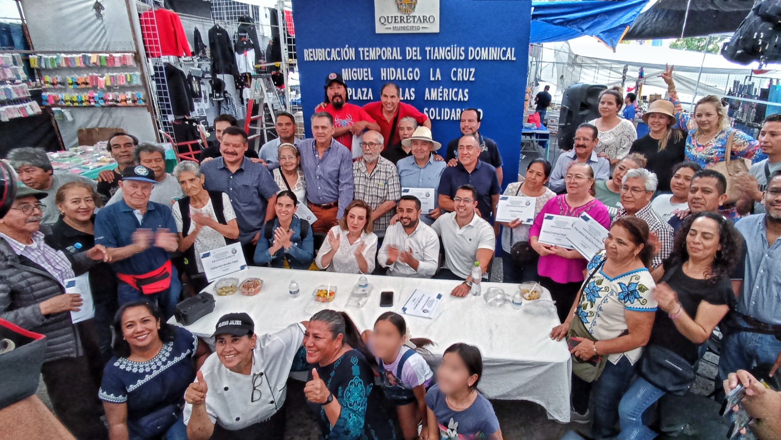 La secretaria de Gobierno, Guadalupe Murguía Gutiérrez, reconoció la entrega y esfuerzo de todos y cada uno de las y los 409 locatarios de la Unión de Comerciantes Tianguistas dominicales Miguel Hidalgo “La Cruz”, quienes después de 44 años de trabajar en la explanada del estacionamiento del Mercado Josefa Ortiz de Domínguez, se trasladarán temporalmente a la Plaza de las Américas, derivado del arranque de obras por parte del Municipio de Querétaro.