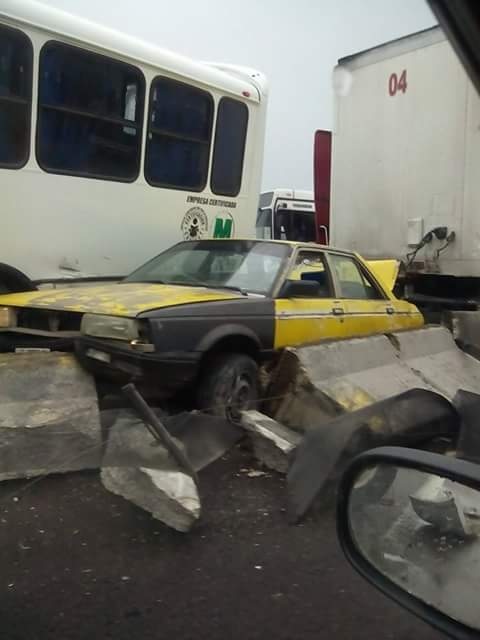 El hecho ocurrió al momento en que un tractocamión no pudo detenerse ante un repentino frenón de lo que circulaban adelante, por lo que derrapó en el asfalto y golpeó por alcance contra un vehículo compacto y una camioneta; después, el chofer volanteó para evitar prensarlos y acabó yéndose contra un camión de pasajeros de la empresa Autotransportes Gutiérrez.