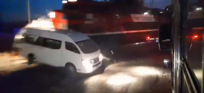 Se presume que no hay personas lesionadas, ya que el conductor y los trabajadores lograron salir minutos antes de que cruzara el tren.