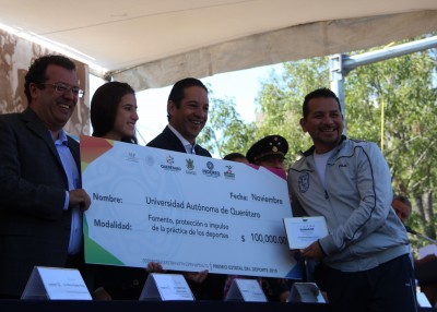 Por parte de la Universidad, el Mtro. Capilla Pérez recibió el Premio; declaró que el trabajo en la Alma Mater queretana se logró debido a la visión del Rector, quien permitió el impulso al deporte como un eje fundamental en la formación de los estudiantes y la construcción de una nueva cultura de vida.