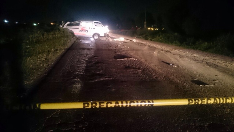La camioneta de transporte de personal quedó destrozada por el camión de pasajeros, del cual el operador se escapó de la escena.