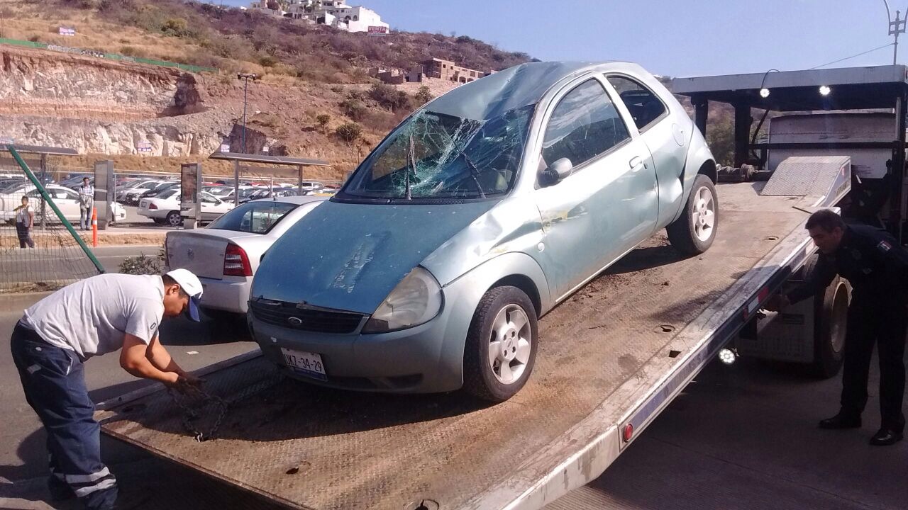 El percance no dejo daños materiales en el camión de pasajeros pero sí muy importantes en el automóvil.