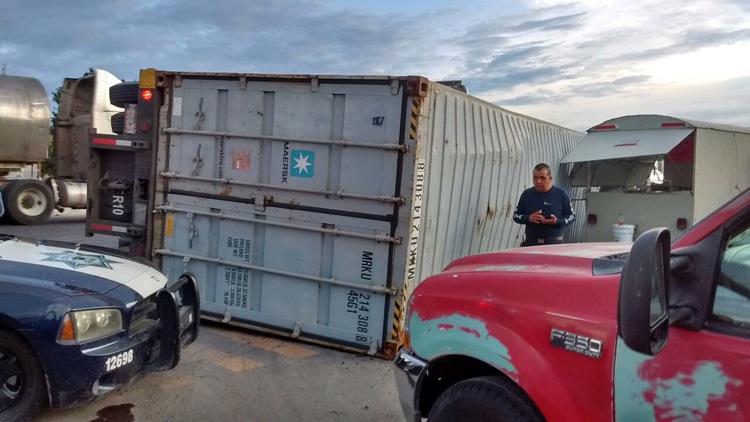 Sobre la Carretera Libre a Celaya se presentó la volcadura del remolque de tráiler, esto en las inmediaciones de Los Ángeles, donde el chófer de la unidad maniobraba en un desnivel y como consecuencia le ganó el peso y cayó.