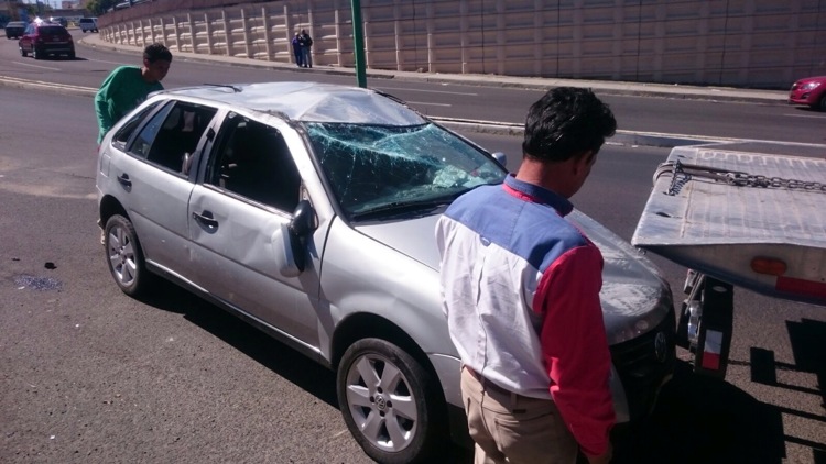Un vehículo compacto volcó en el Boulevard de las Américas a la altura del descenso al parque hundido.