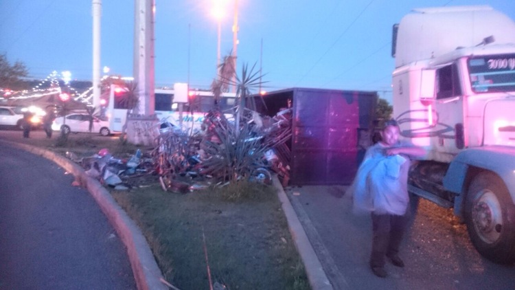 El hecho se presentó como consecuencia de une falla en la estructura del tractocamión, esto porque los soportes se vencieron por el peso de la carga y debido a la velocidad con que el chófer tomó la curva.