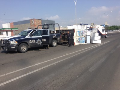 Los muebles quedaron regados sobre la carpeta asfáltica, por lo que fue necesario que personal de la empresa acudieran a recogerlo.