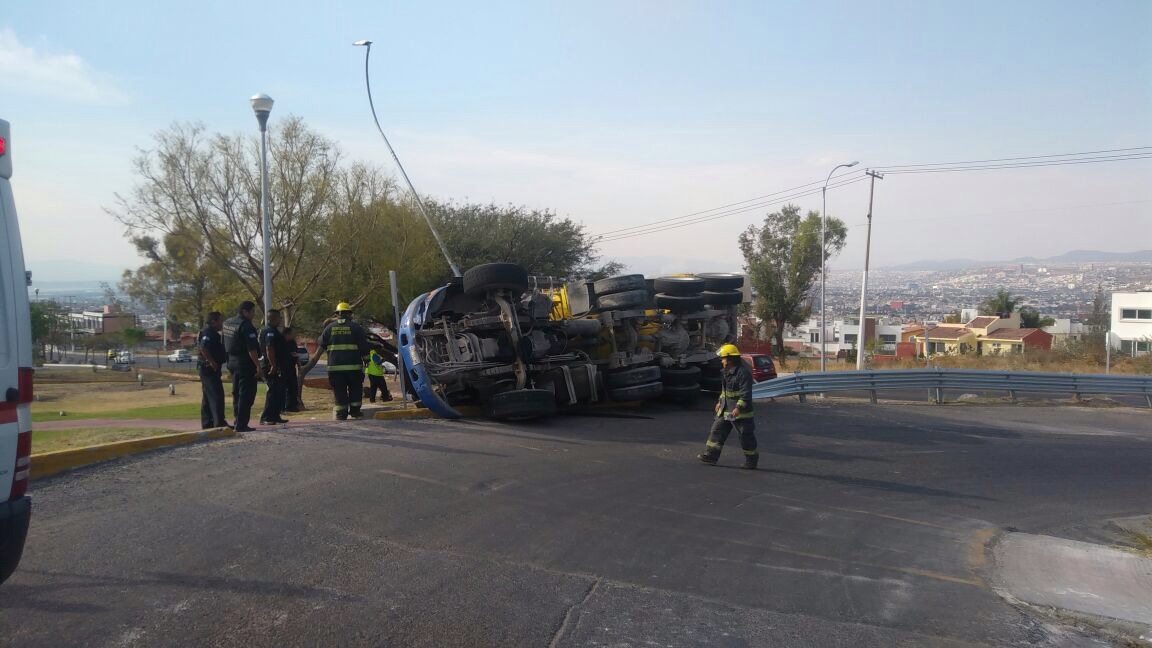 Una revolvedora quedó de costado al tomar un retorno ubicado en Av. del Parque al sur de lan ciudad, se presume que el exceso de velocidad género que la unidad volcara.